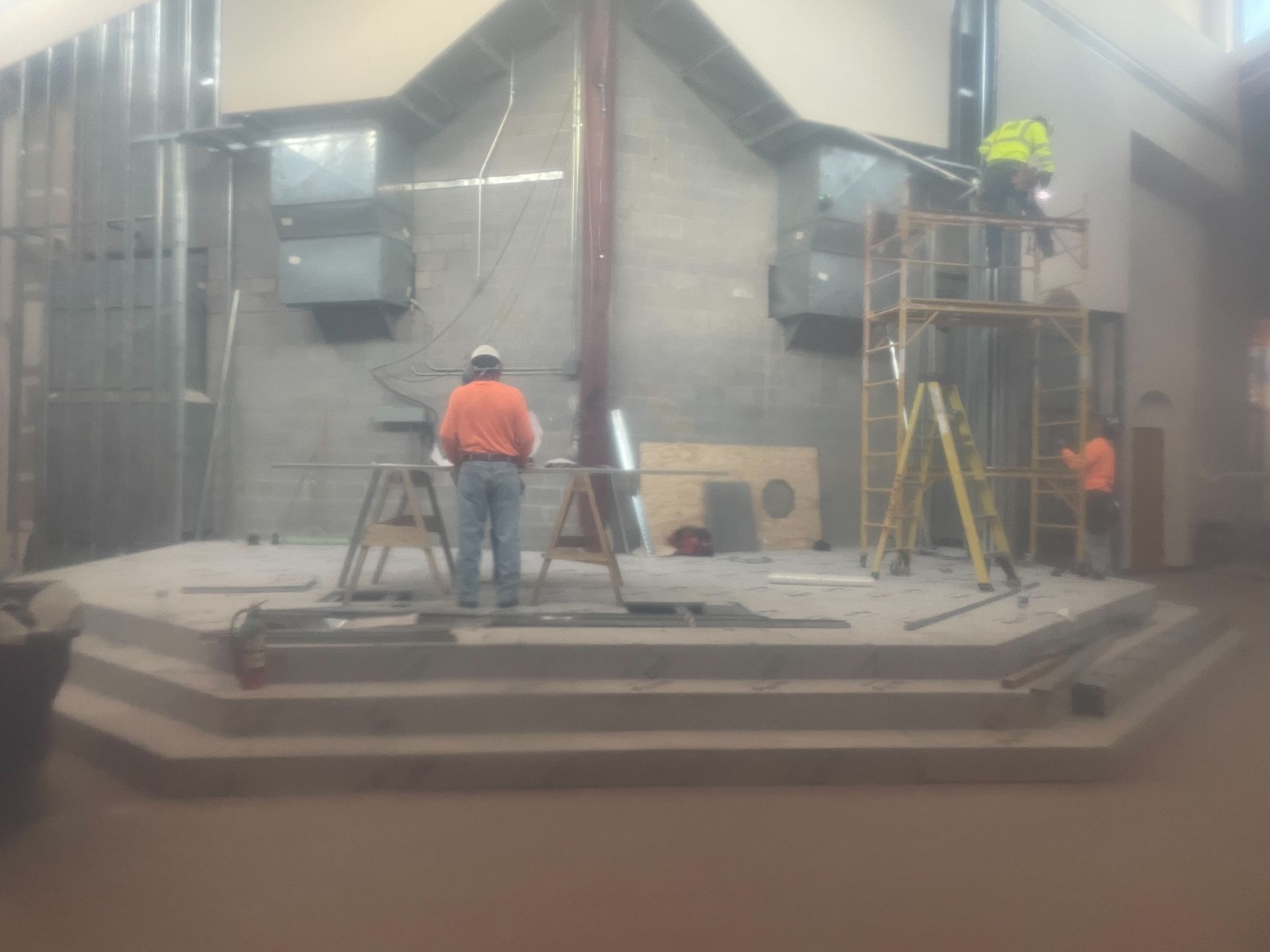 Our Sanctuary renewal is starting to take shape. The demo has been completed and now the fun begins. The back wall is being formed and the structure for the altar canopy is in place. Materials for the columns and other parts are currently on site.